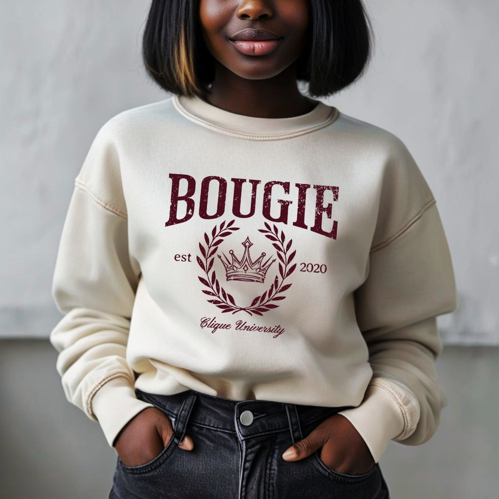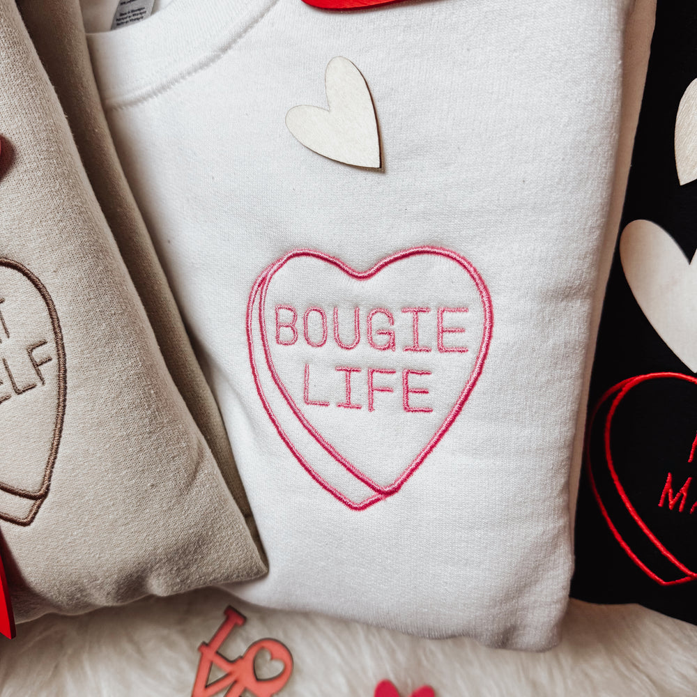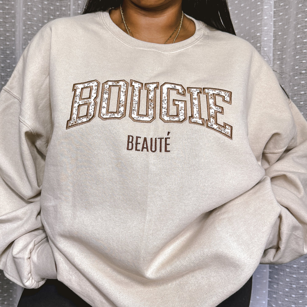 BOUGIE BEAUTY Applique' EMBROIDERED CREW