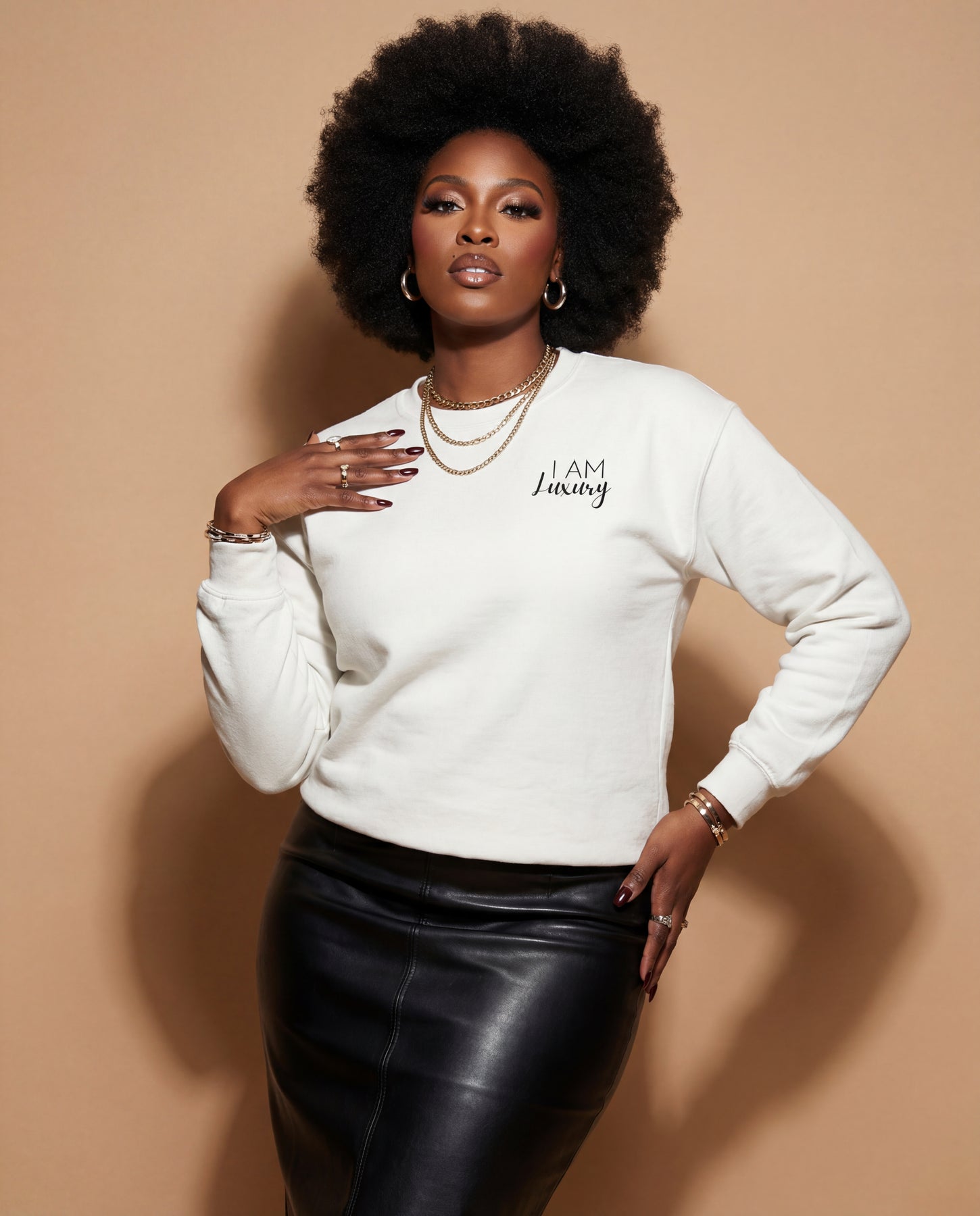 Slip into the I AM LUXURY CREW and let your style do the talking. This sweatshirt isn’t just cozy—it’s a statement. Perfect for those who demand comfort without sacrificing flair, it wraps you in softness while turning heads. Own your vibe, because luxury isn’t just a look, it’s an attitude.