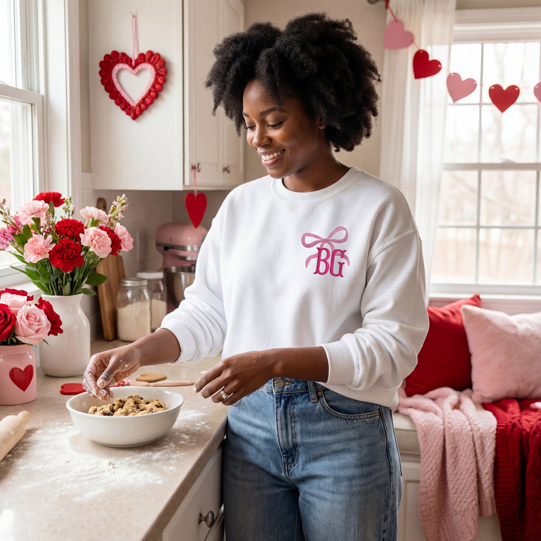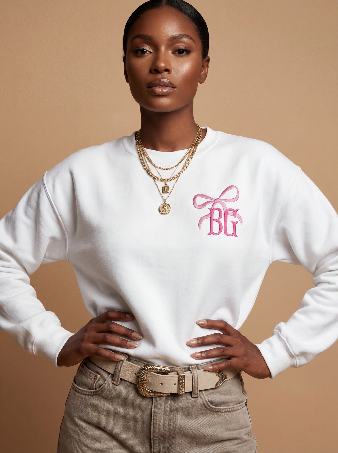 Sweet, feminine, and unapologetically chic — our Coquette Monogram Crewneck is the definition of soft-girl energy with a custom twist. Designed with a playful yet refined monogram detail, this sweatshirt brings charm and personality to your everyday wardrobe.